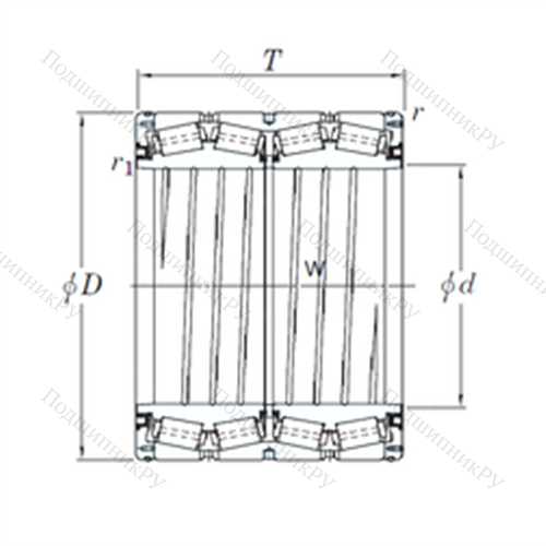 Подшипник роликовый радиально-упорный 4TRS559C у которого конструкционной особенностью являются ролики в форме конуса и разъемный корпус. Изделие также может быть укомплектовано наружным кольцом с упорным бортиком или большим углом, двухрядными или четырехрядными роликоподшипниками, утолщенной внешней шиной.