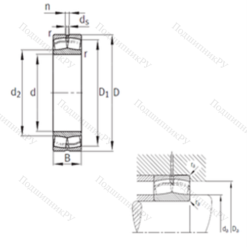 Подшипник роликовый радиальный самоцентрирующийся 22338-MB предназначен, главным образом, для эксплуатации в условиях аксиальных воздействий. Существуют варианты в однорядном и двухрядном исполнении. В первом случае неразъемная конструкция закрепляется при помощи втулок и включает бочкообразные роликоподшипники, сепаратор, толстостенную внешнюю обойму сферической формы и внутреннее широкое кольцо с бортиками, в котором иногда располагается посадочное гнездо под цилиндрическую или коническую посадочную основу. Второй тип имеет двухрядный набор тел качения и способен к восприятию как аксиальных, так и осевых нагрузок.