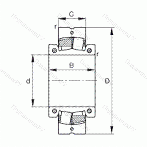 - 23152K / Условное обозначение, двухрядный радиальный сферический роликоподшипник, неразъемный