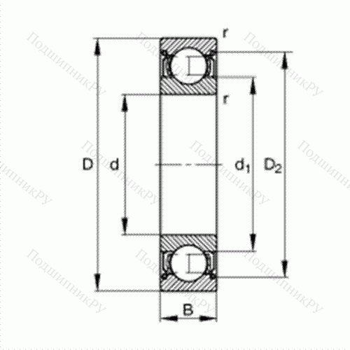 Основные размеры по DIN 625-1, щелевые уплотнения с двух сторон