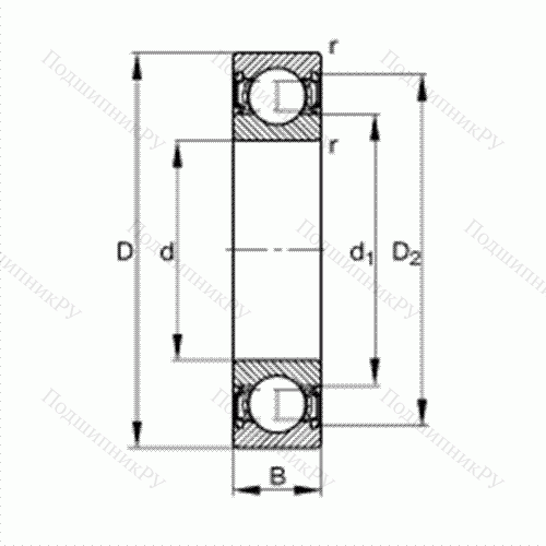 Основные размеры по DIN 625-1, контактные уплотнения с двух сторон