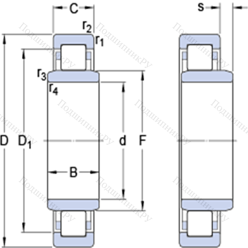 Однорядные цилиндрические роликоподшипники NUB 210 ECP